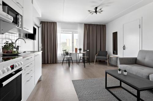 Featuring Nordic interior design, each apartment comes with a kitchenette, including a microwave, oven and refrigerator. A dining table, flat-screen TV and free WiFi are also standard. Bed linen and towels are included for extra comfort.